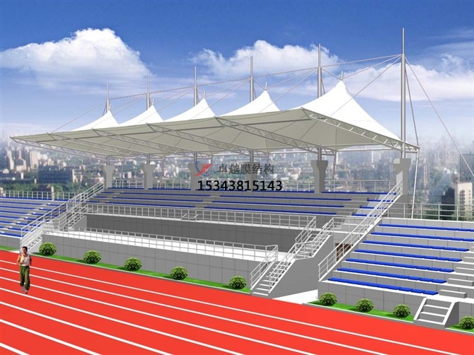 張拉膜看臺(tái)主要用于各類地方體育場主席臺(tái)雨棚,各類學(xué)校體育場看臺(tái)雨棚遮蓋,我公司是國內(nèi)較早從事大懸挑張拉膜結(jié)構(gòu)看臺(tái)設(shè)計(jì)施工的專業(yè)廠家,下面介紹一下我們?cè)诒6ㄊ兄苓吙h市完工的一些張拉膜看臺(tái)設(shè)計(jì)施工案例,我公司先后在保定市周邊承接了保定學(xué)院看臺(tái)雨棚、保定市第七中學(xué)張拉膜看臺(tái)罩棚、保定動(dòng)力工程技工學(xué)校張拉膜看臺(tái)遮陽棚張拉膜看臺(tái)遮陽棚等設(shè)計(jì)施工項(xiàng)目,簡介如下: