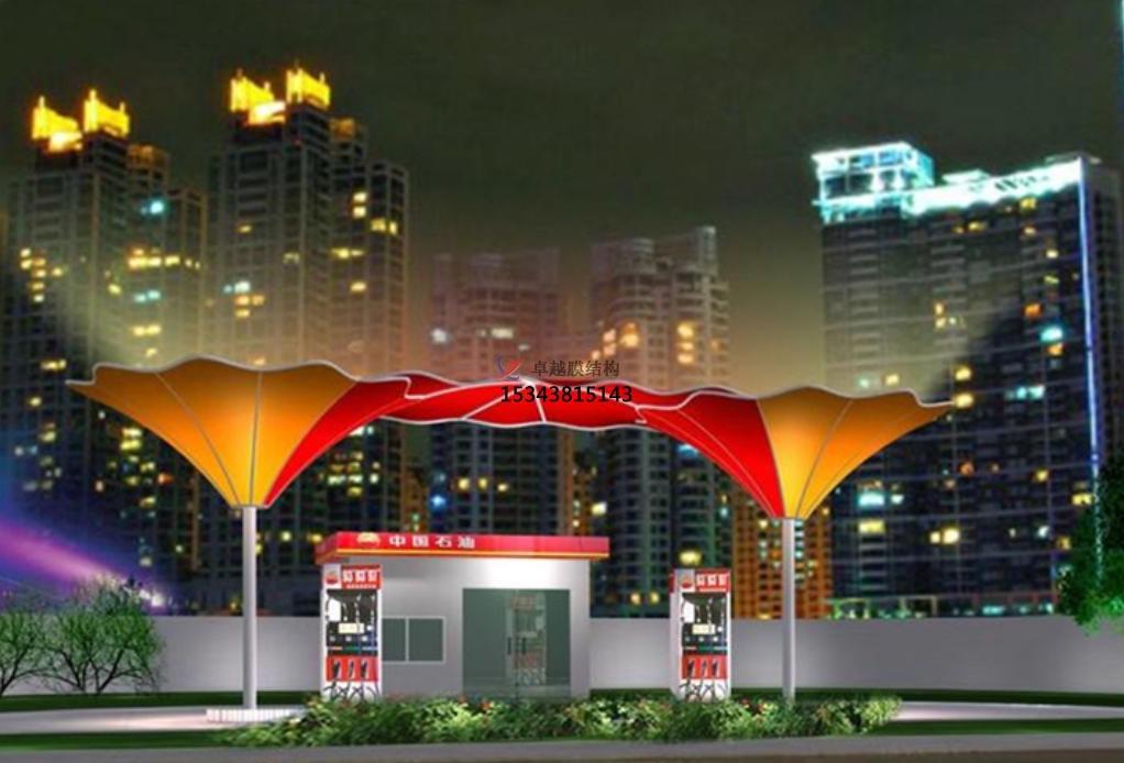 優(yōu)異的透光性:部分膜材料具有良好的透光性,能夠為加油站提供充足的自然光照,減少照明設(shè)備的使用,節(jié)約能源。