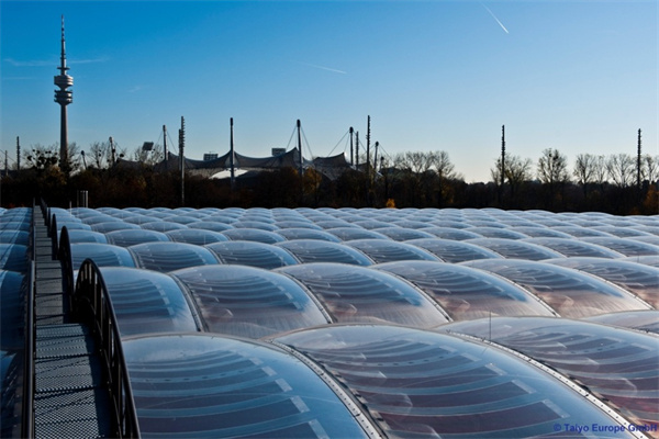 卓越的透光性 – ETFE薄膜可以高度透明,并允許紫外線通過,紫外線負責促進光合作用,從而促進植物生長。太陽能控制/遮陽 – ETFE薄膜系統(tǒng)可在一層或多層上加入多種玻璃料圖案,以改變其太陽能性能。箔片印有各種標準或定制圖案。顏色可以通過各種方式引入,無論它是在薄膜擠出過程中應用,提供從紅色到紫色的各種色調(diào)的一致色調(diào),或添加無限顏色選項的照明。彈性 – 雖然ETFE薄膜非常有彈性,但它們?nèi)跃哂薪Y構抗性。彈性/塑性極限的拉伸強度為21-23N /mm 2,但斷裂點的拉伸強度為52/Nmm 2。對于膜結構計算,通常保守地采用15 N /mm的極限。持久耐用 – 長期暴露于環(huán)境污染,紫外線,刺激性化學品或極端溫度變化,ETFE不會降解。聲學 – ETFE薄膜具有大約70%的聲學傳輸可持續(xù)/節(jié)能 – 從薄膜的擠出到運輸?shù)浆F(xiàn)場,與其他類似的包覆材料相比,消耗的能量很少,從而減少了整體碳足跡。除此之外,產(chǎn)品的性質(zhì)通過隔熱和采光增強了建筑物理,從而有助于建筑的全球低能耗。成本效益 – 由于ETFE的輕質(zhì)特性,可以更有效地設計下部結構支撐系統(tǒng)和混凝土基礎。ETFE系統(tǒng)還提供充足的自然采光,從而通過降低對室內(nèi)照明的需求來更小化能源成本。可回收 – 易于回收利用,來自制造過程的廢棄物甚至舊的ETFE元件可以重新制成新的ETFE產(chǎn)品,如管道部件,電線或鑄件。