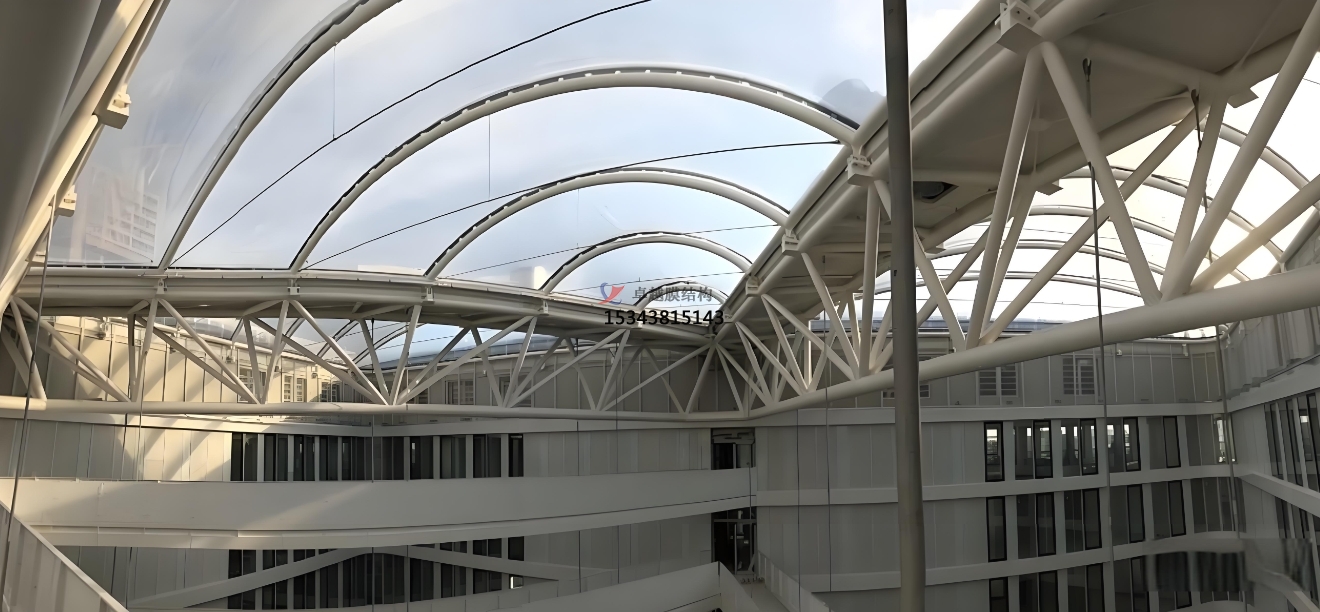 ETFE膜,更大的優(yōu)勢還在于它們可以加工成任何尺寸和形狀,滿足大跨度的需求,節(jié)省了中間支承結(jié)構(gòu)。作為一種充氣后使用的材料,它可以通過控制充氣量的多少,對遮光度和透光性進(jìn)行調(diào)節(jié),有效地利用自然光,節(jié)省能源,同時(shí)起到保溫隔熱作用。
