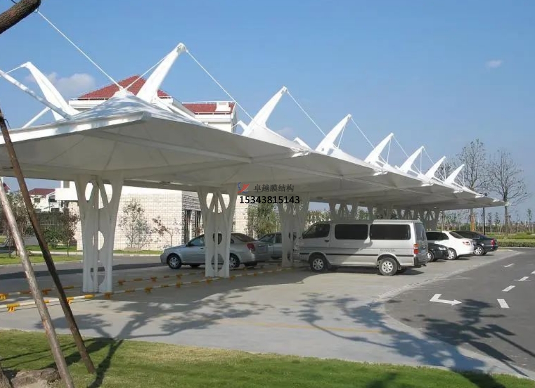 美觀大方:膜材料具有良好的透光性和折射性,使得車棚在外觀上更加美觀大方,能夠與周圍環(huán)境協(xié)調融合。