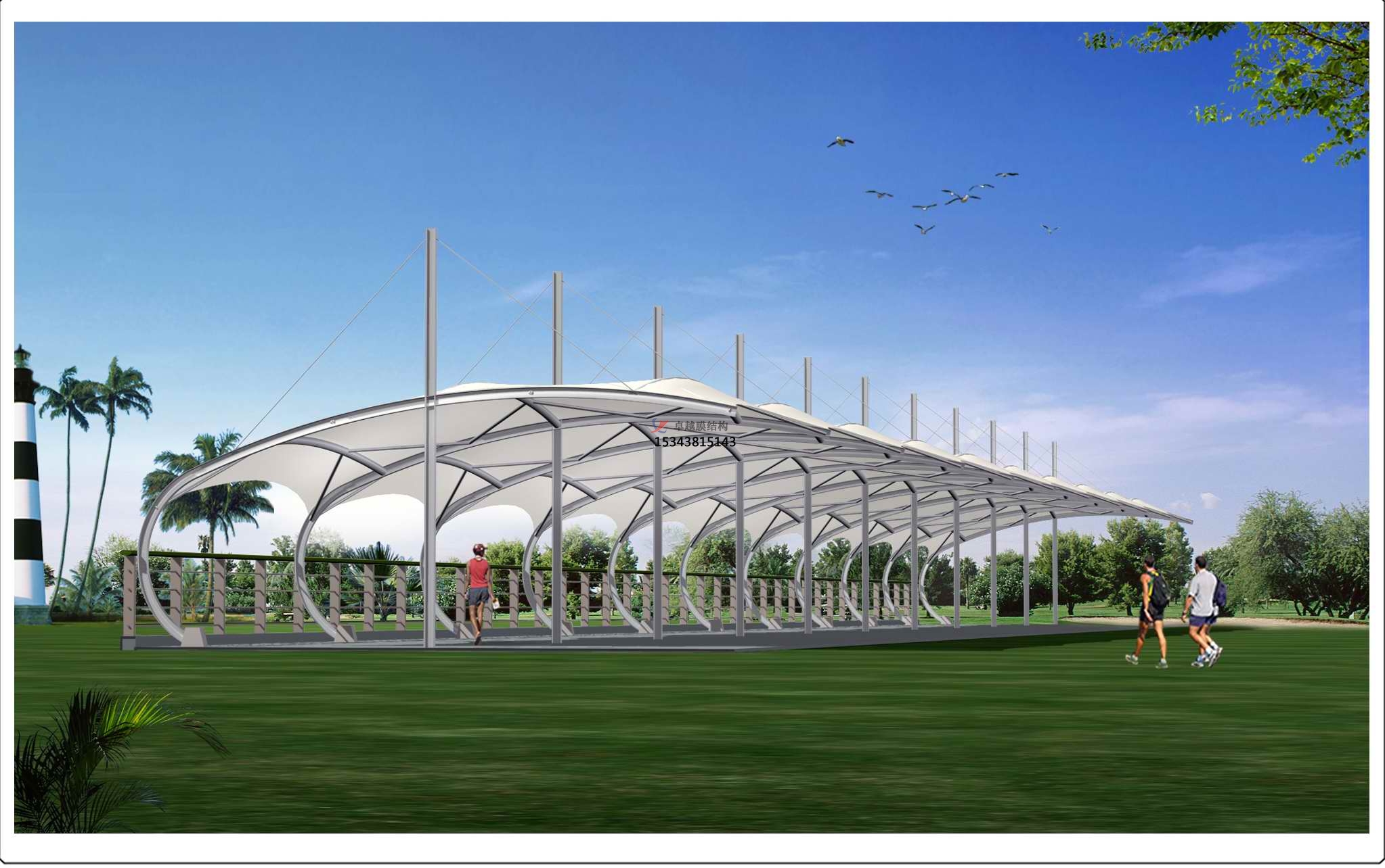 高爾夫球場(chǎng)綠草如茵青山環(huán)繞的整體環(huán)境,時(shí)尚又環(huán)保的配套設(shè)施才能更加提升其高貴品質(zhì)。膜結(jié)構(gòu)因適用廣,技術(shù)性及藝術(shù)性兼?zhèn)?,用?lái)建設(shè)高爾夫球場(chǎng)發(fā)球臺(tái)再合適不過(guò),潔白的膜材及獨(dú)特的造型搭配,此外,因張拉膜具有自重輕的特性,使其外表看起來(lái)輕盈簡(jiǎn)約,讓前來(lái)運(yùn)動(dòng)的人們耳目一新,卸下平日工作壓力帶來(lái)的那份沉重,盡情享受身體與心靈的放松,何樂(lè)而不為呢?