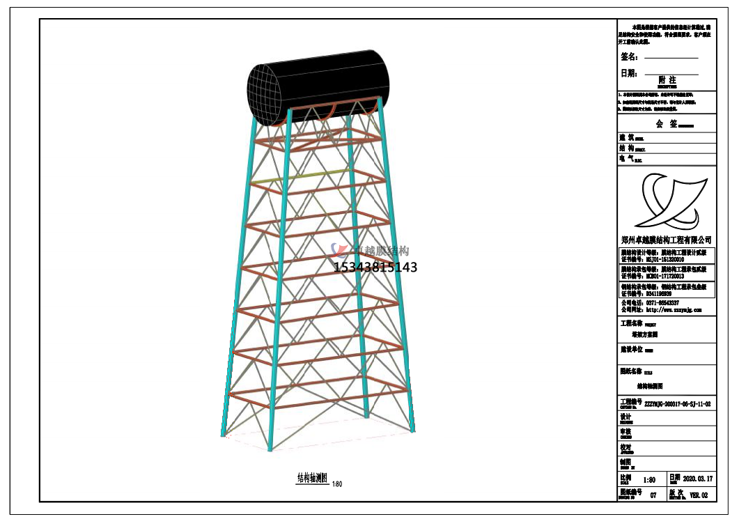 鋼結(jié)構(gòu)水塔三維模型圖,水塔一般居民區(qū)里蓄水作用,有些還是水廠生產(chǎn)工藝的一個(gè)重要組成部分。用于儲(chǔ)水和配水的高聳結(jié)構(gòu),用來保持和調(diào)節(jié)給水管網(wǎng)中的水量和水壓。主要由水柜、基礎(chǔ)和連接兩者的支筒或支架組成。在工業(yè)與民用建筑中,水塔是一種比較常見而又特殊的建筑物。它的施工需要特別精心和講究技藝,如果施工質(zhì)量不好,輕則造成永久性滲漏水,重則報(bào)廢不能使用。