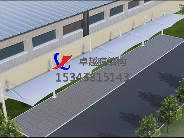 膜結(jié)構(gòu)車棚PVC材料的主要特點(diǎn)是強(qiáng)度低、彈性大、易老化、徐變大、自潔性差,但價格便宜,容易加工制作,色彩豐富,抗折疊性能好。為改善其性能,可在膜結(jié)構(gòu)車棚表面涂一e799bee5baa6e997aee7ad94e4b893e5b19e31333433626562層聚四氟乙烯涂層,提高其抗老化和自潔能力,其壽命可達(dá)到15年左右。