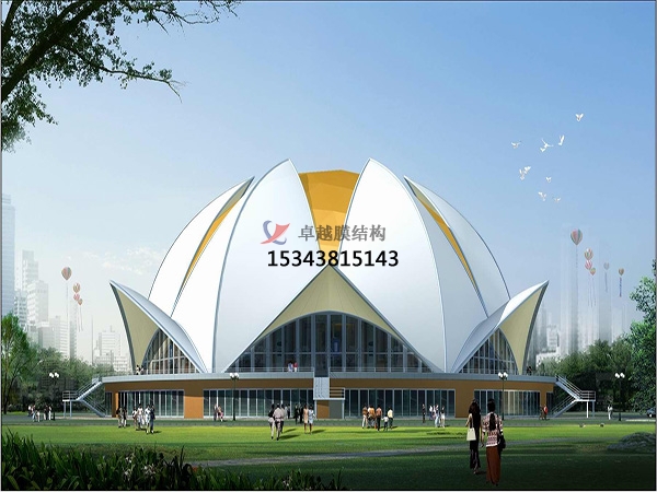 天津保稅區(qū)區(qū)標是膜結構建筑的開端,而索膜結構就是建筑的特色之一。44個獨立的膜結構單元體和鋼結構采用牽拉方式連接,面材采用進口的PVC膜材精致鋪設。