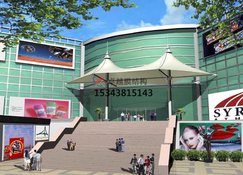 張拉膜景觀具有藝術(shù)性,充分發(fā)揮建筑師的想象力,又體現(xiàn)結(jié)構(gòu)構(gòu)件清晰受力之美。由于膜材具有一定的透光率,白天可減少照明強度和時間,能很好的節(jié)約能源。同時夜間彩燈投射形成的絢爛景觀也能達(dá)到很好的廣告宣傳效益。