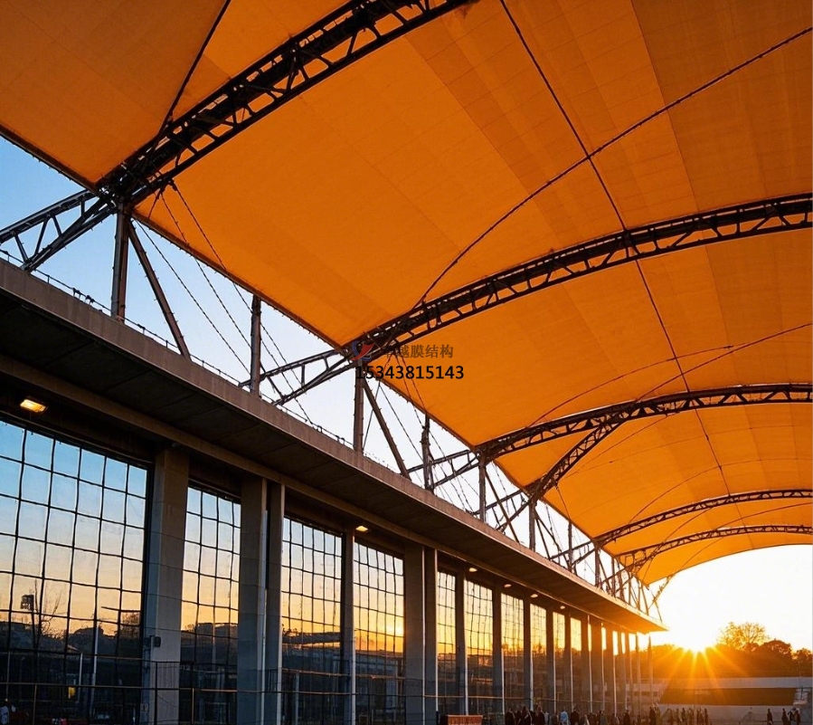足球場膜結(jié)構(gòu)主要由膜材與支撐結(jié)構(gòu)攜手構(gòu)建。膜材堪稱核心角色,常用的如聚四氟乙烯(PTFE)膜材,不僅具備超強的耐候性,可從容應(yīng)對風(fēng)吹日曬、雨雪侵襲,長期使用也不易老化損壞;其自潔性能更是出色,表面不易沾染灰塵污垢,能始終保持潔凈外觀。乙烯 - 四氟乙烯共聚物(ETFE)膜材同樣表現(xiàn)不凡,擁有良好的透光性,可讓充足的自然光灑入足球場,營造明亮舒適的運動環(huán)境,同時具備較高的強度與柔韌性 。