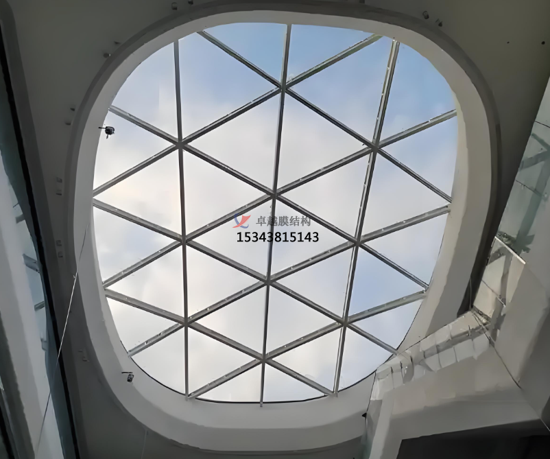 ETFE(乙烯 - 四氟乙烯共聚物)膜作為一種革命性的建筑材料,憑借其獨(dú)特的性能在現(xiàn)代建筑中占據(jù)重要地位。其密度僅為玻璃的 1%,卻擁有高達(dá) 500N/5cm 的拉伸強(qiáng)度,能夠顯著降低建筑主體結(jié)構(gòu)荷載,尤其適合大跨度空間。透光率高達(dá) 95% 的特性使其成為自然光利用的理想選擇,配合絲網(wǎng)印刷技術(shù)可靈活調(diào)節(jié)遮陽(yáng)與采光比例。此外,ETFE 膜的耐候性極強(qiáng),可在 - 200℃至 150℃的極端環(huán)境中穩(wěn)定服役,使用壽命超過(guò) 25 年,且具備自清潔功能,減少維護(hù)成本。