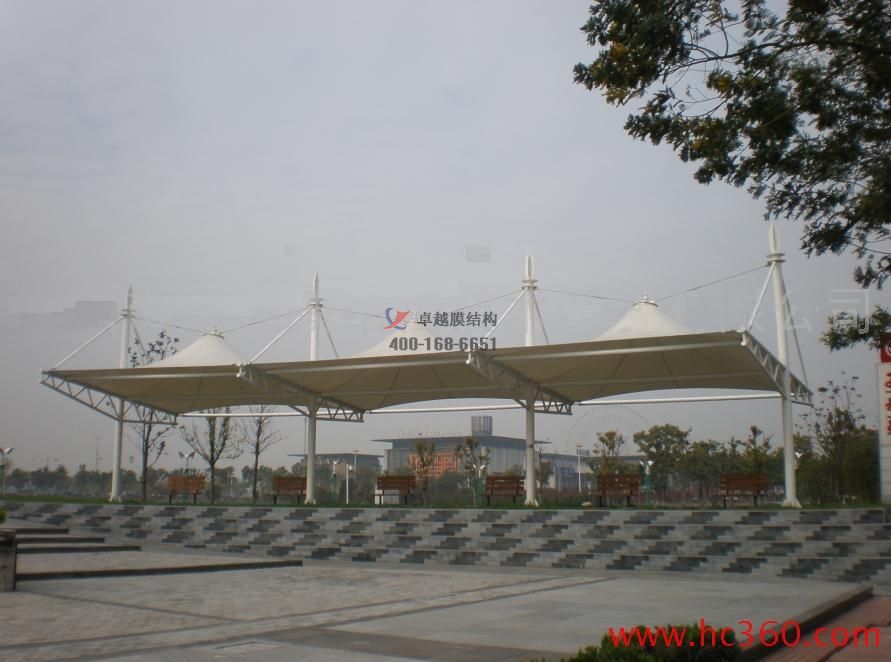 膜結(jié)構(gòu)建筑具有耐紫外線、耐腐蝕、柔韌性好、材料輕、造型美觀、環(huán)保節(jié)能、機(jī)械性能好、耐火性強(qiáng)、自潔能力強(qiáng)、安裝拆卸方便等優(yōu)點(diǎn)??梢哉f,它是一種非常更好的新型建筑材料,廣泛應(yīng)用于各種遮陽、商業(yè)吊頂、景觀棚等,使用壽命可達(dá)15年以上,可以說作為一種材料具有固有的優(yōu)勢。