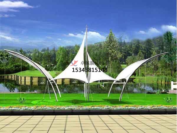 2、膜結(jié)構(gòu)主要應(yīng)用景觀張拉膜能提供豐富多彩的用途,并與園林景觀溶為一體。創(chuàng)造出讓人們盡情享受的快樂空間。充分展示了結(jié)構(gòu)構(gòu)件清晰受力的藝術(shù)之美,它巧妙的整合周圍的環(huán)境,給人們一種高貴典雅、浪漫溫馨之感。我公司是具有獨立法人資格,從設(shè)計-生產(chǎn)-運輸-施工為一體的專業(yè)廠家,下面大家一起來了解一下我司在普洱市周邊縣市完工的一些膜結(jié)構(gòu)景觀案例,我司先后在普洱地區(qū)承接了普洱茶源廣場膜結(jié)構(gòu)景觀、普洱大世界購物中心景觀小品、普洱火車站景觀小品的設(shè)計施工,簡介如下: