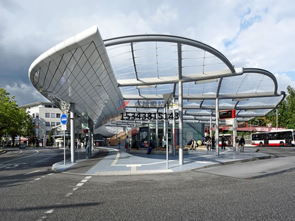 建筑入口使城市公共空間與建筑空間相鄰的界面,成為城市空間的組成部分。它是人們視覺(jué)更先接觸的部分,因此,除了功能以外,還應(yīng)有很強(qiáng)的標(biāo)識(shí)性,并能體現(xiàn)建筑的個(gè)性,是建筑環(huán)境和城市景觀的重要組成部分。由于膜結(jié)構(gòu)獨(dú)特的造型是其他結(jié)構(gòu)類(lèi)型無(wú)法比擬的,故成為近來(lái)建筑入口經(jīng)常采用的形式。