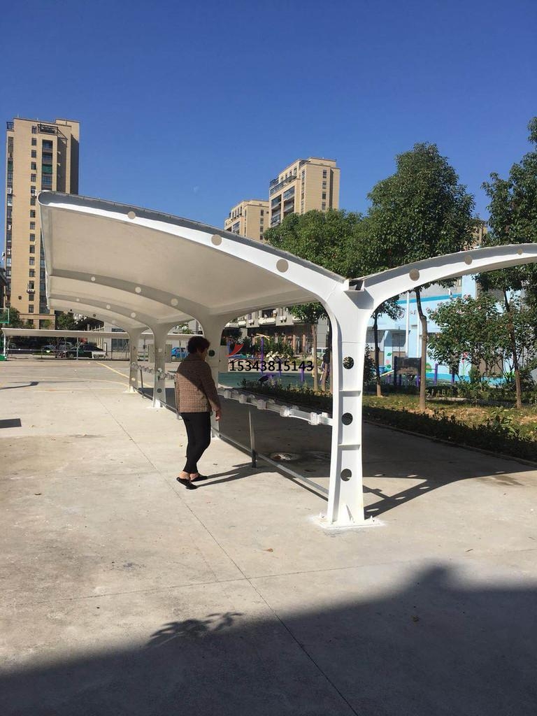 3、膜結構充電站頂部封板采用茶色(顏色可挑選)陽光板封頂,與車棚整體骨架用壓條鉚接固定,耐酸堿腐蝕,有足夠強度對棚內(nèi)車輛起到保護作用。
