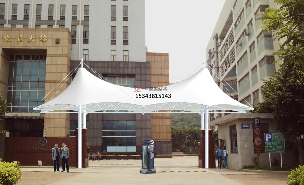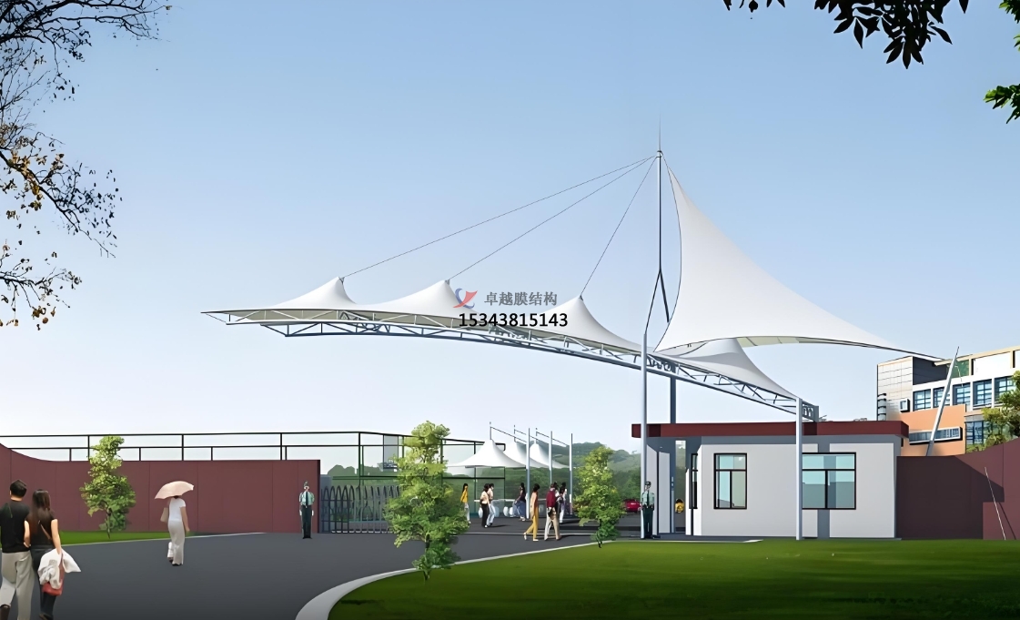 4. 結(jié)構(gòu)穩(wěn)定與承載力強(qiáng):膜結(jié)構(gòu)設(shè)計(jì)堅(jiān)固,能夠承受較大的負(fù)荷,確保了進(jìn)出口的安全性和可靠性。