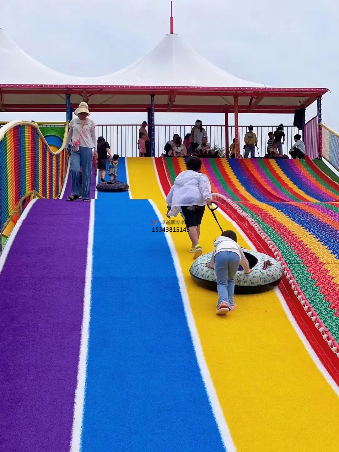遮陽棚采用雙層膜結(jié)構(gòu),全長100米,寬度可根據(jù)需要調(diào)整。棚內(nèi)安裝有滑梯、秋千、攀巖等兒童游樂設施,是孩子們的樂園。此外,遮陽棚還配備了休閑座椅、茶水等設施,供游客休息、聊天。