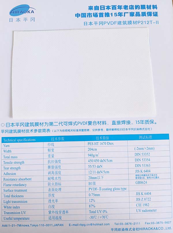 日本平岡建筑膜材,全球高端膜材中的佼佼者,具有超自潔性和超耐久性,15年廠家品質(zhì)保證。