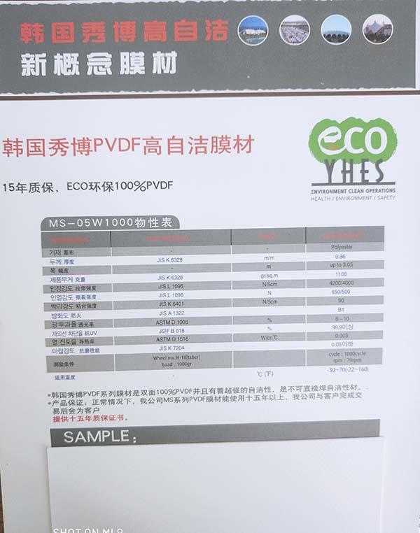 秀博工業(yè)集團(tuán)全新開發(fā)的納米抗UV,ECM膜材,全新的納米層可使膜材使用壽命達(dá)到15 年并不發(fā)黃變色,持久如新。同時(shí)通過ECO環(huán)