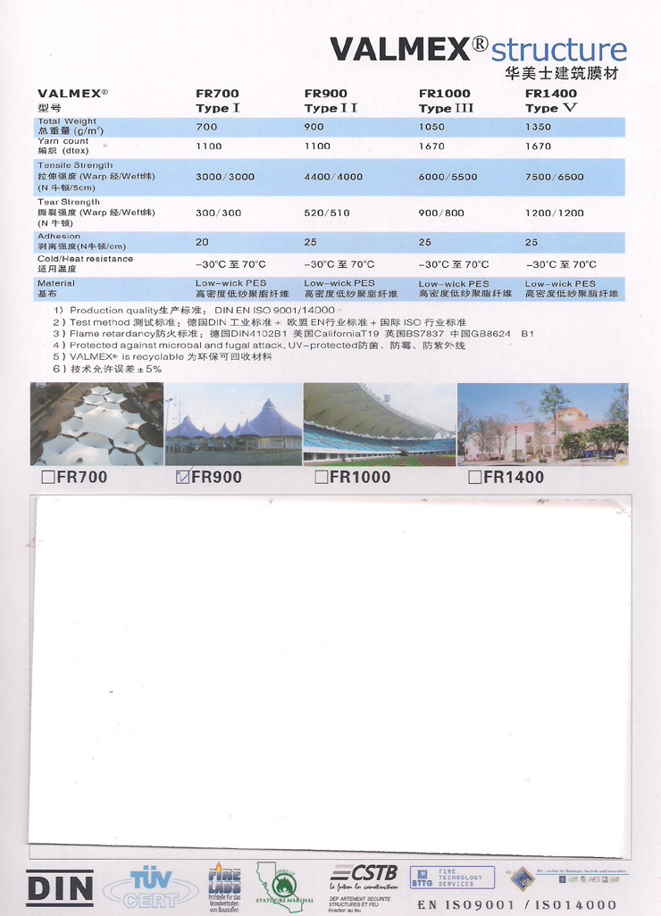 德國(guó)米樂(lè)膜材的獨(dú)特性能:雙面PVDF自潔涂層-不僅對(duì)膜材頂面有更好的的保護(hù)作用,而且對(duì)底面也有優(yōu)良的保護(hù)作用。完全消除了僅有一面PVDF涂層的膜材缺點(diǎn),和因此而帶來(lái)的工程隱患。使其更加適合品質(zhì)要求較高的大型、永久性、標(biāo)志性建筑。