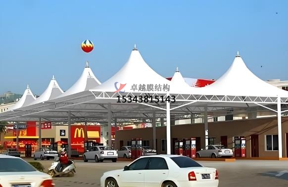 加油站張拉膜未來(lái)發(fā)展趨勢(shì)無(wú)限大。隨著綠色建筑理念普及,張拉膜結(jié)構(gòu)在加油站中的應(yīng)用將進(jìn)一步拓展,例如結(jié)合光伏發(fā)電膜材實(shí)現(xiàn)能源自給,或通過(guò)智能化控制系統(tǒng)調(diào)節(jié)遮光率。其輕量化、高自由度的特點(diǎn)也將推動(dòng)更多創(chuàng)新型服務(wù)空間的設(shè)計(jì)。