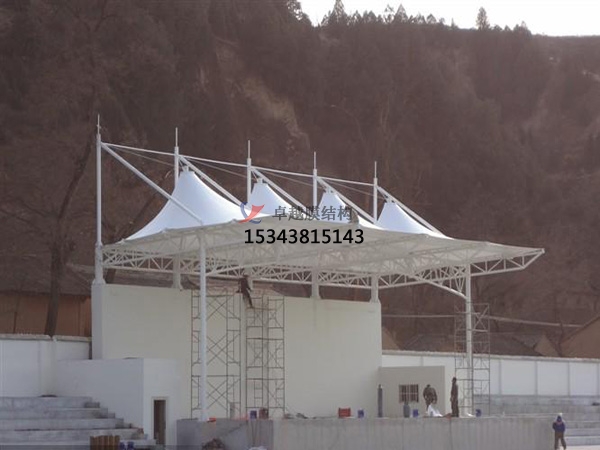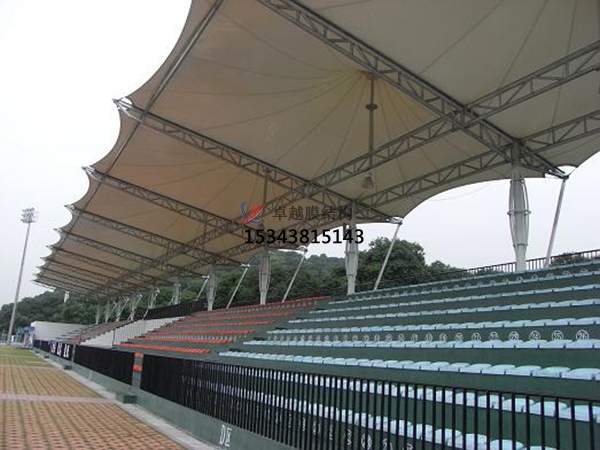 用于膜結(jié)構(gòu)工程中的膜材是一種具有強度,柔韌性好的薄膜材料,是由纖維編織成織物,在其基材兩面以樹脂為涂層材料所加工固定而成的材料,中心的織物基材分為聚酯纖維及玻璃纖維,而作為涂層材使用的樹脂有聚氯乙烯樹脂(PVC),硅酮(silicon)及聚四氟乙烯樹脂(PTFE),在力學上織物基材及涂層材料分別具有影響下列的功能性質(zhì)??椢锘?mdash;—抗拉強度,抗撕裂強度,耐熱性,耐久性,防火性。涂層材——耐候性,防污性,加工性,耐水性,透光性。