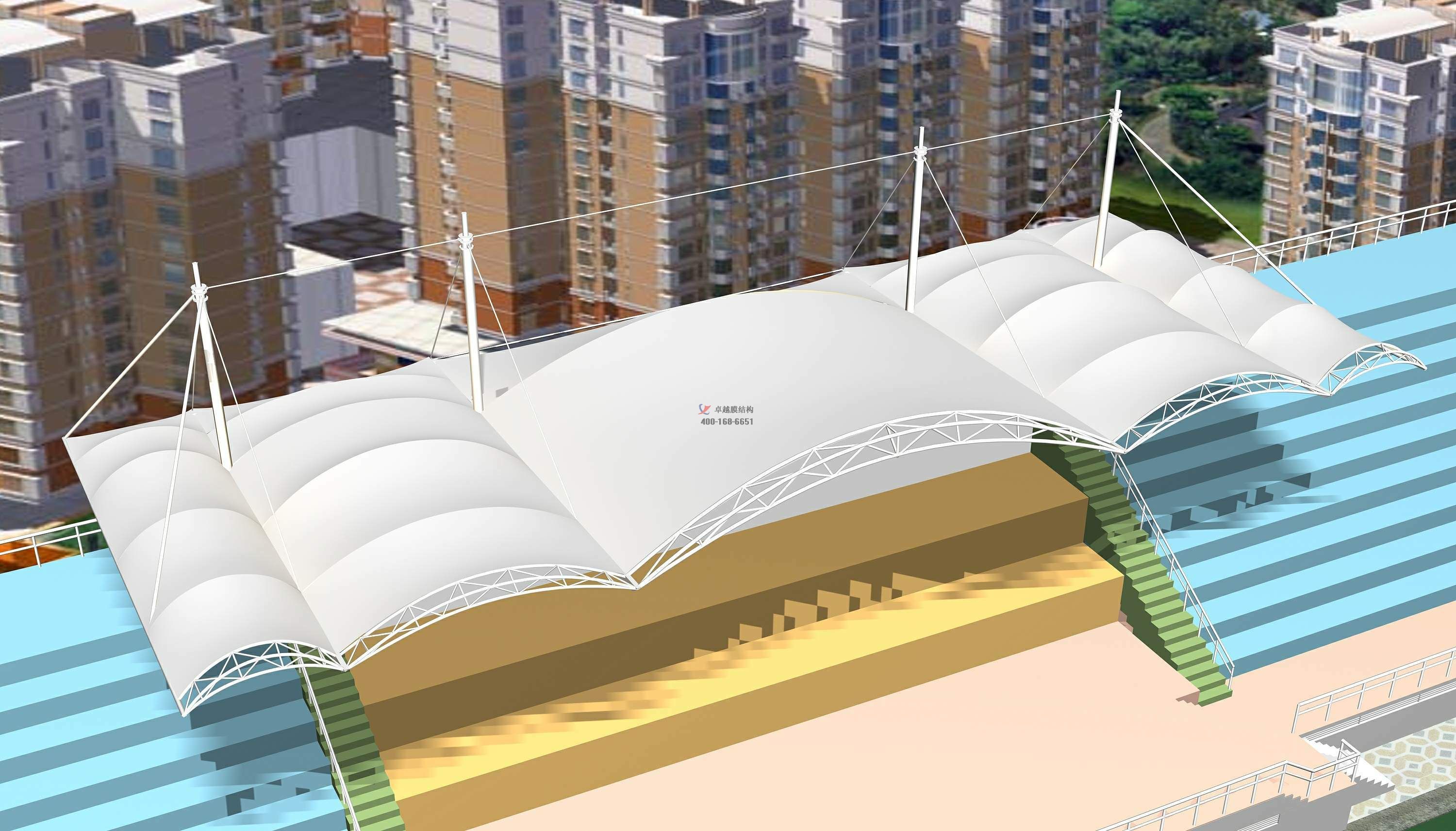 膜結(jié)構(gòu)看臺(tái)是膜結(jié)構(gòu)材料近年來應(yīng)用的一個(gè)新領(lǐng)域,膜結(jié)構(gòu)建筑能很好的籠罩全部的看臺(tái),是有: