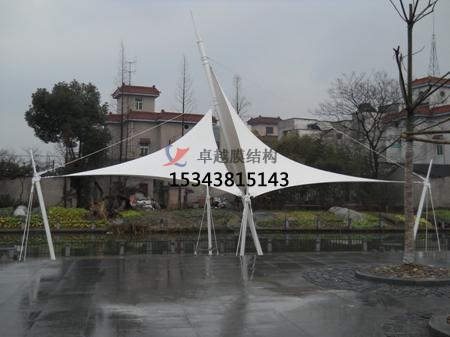 3. 在張拉膜景觀的施工中,應注意膜材料的張力,這是保證結(jié)構(gòu)穩(wěn)定性的重要因素。為了達到更好的效果,要求施工人員隨時調(diào)整膜張力,避開應力塌陷區(qū)和應力集中區(qū),避免張力過大造成膜撕裂。