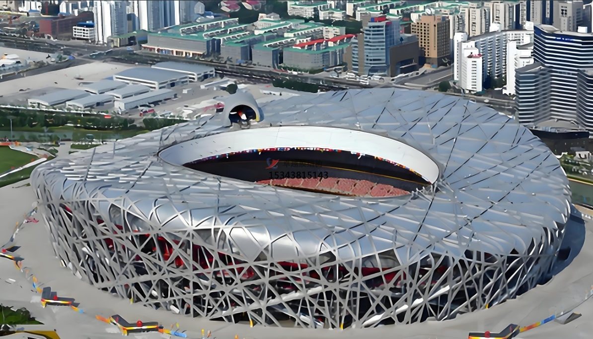 北京奧運會鳥巢體育館:雖然主體結(jié)構(gòu)為鋼結(jié)構(gòu),但其頂部的膜結(jié)構(gòu)覆蓋為整個場館增添了一份輕盈與靈動,成為了標志性建筑之一。