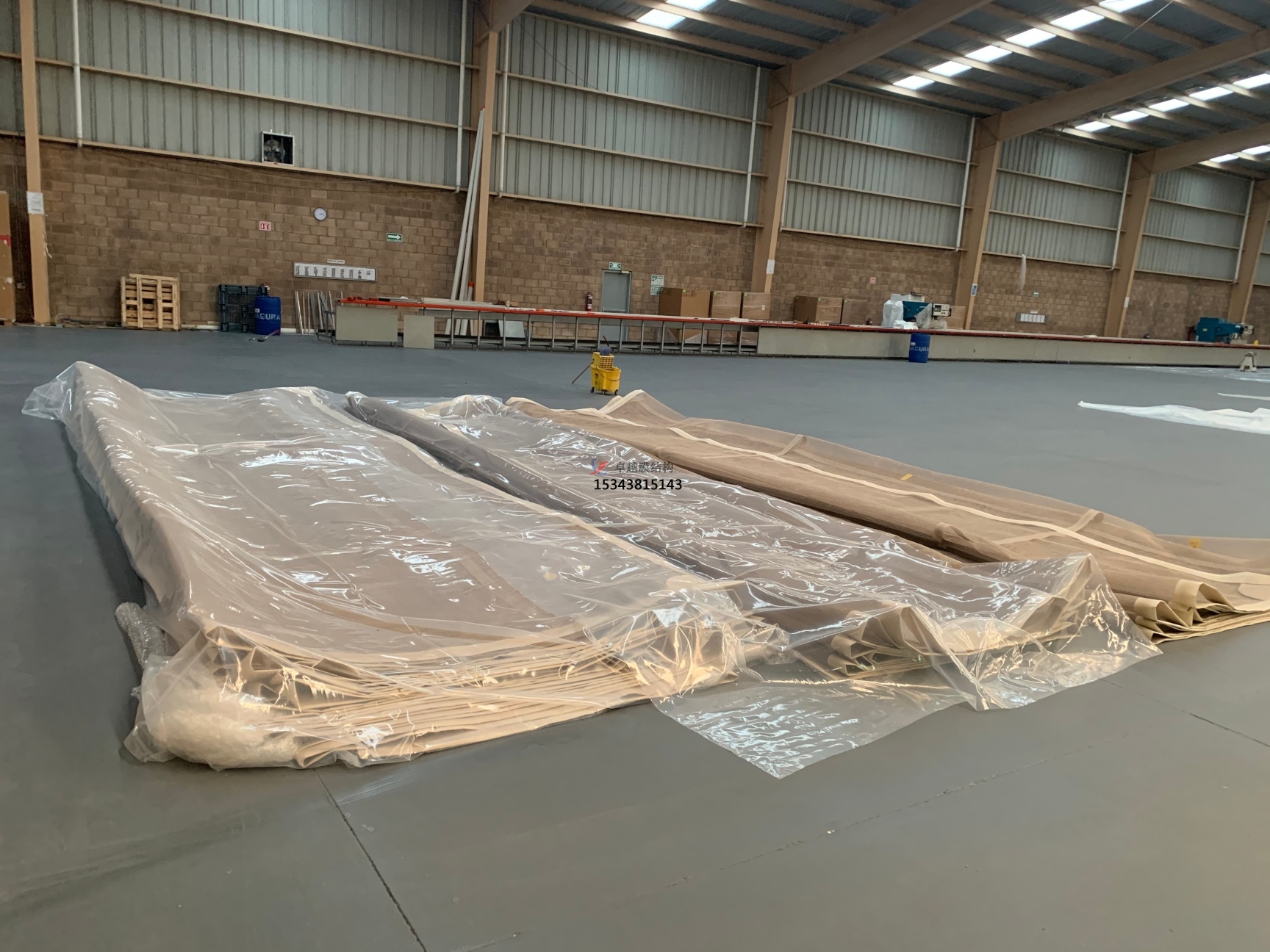 膜材經(jīng)查驗(yàn)后要運(yùn)進(jìn)已除塵的清潔車間。在下料區(qū)、編排放樣區(qū)、駁接區(qū)及三個(gè)區(qū)的銜接處鋪上柔質(zhì)的板膠, 防止膜片直接觸摸地上, 防止磨損或者弄臟膜材。進(jìn)入車間的人員必須穿潔凈的衣服, 換上車間專用的柔軟拖鞋或只穿襪子。