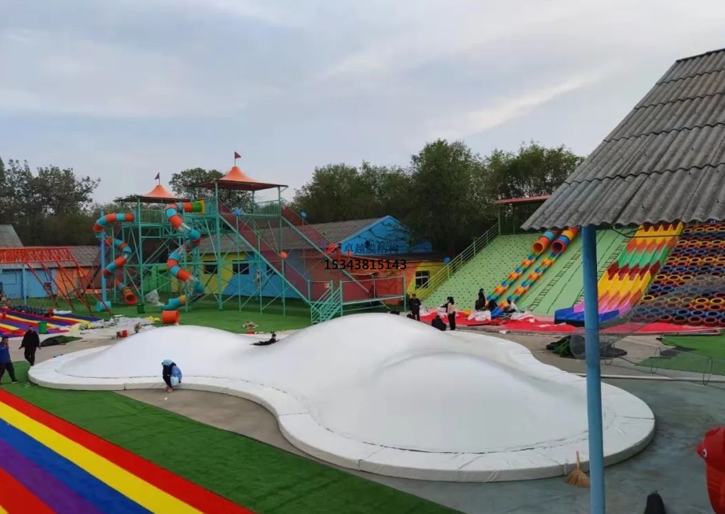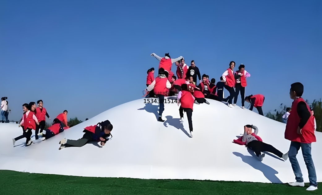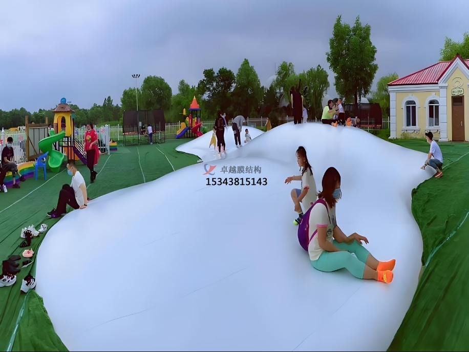 蹦蹦云的設計高度靈活,可根據(jù)場地環(huán)境定制形態(tài)與規(guī)模。無論是平坦空地還是起伏地形,均可通過設置沙坑、坡度或洞穴,塑造自然野趣的游樂場景。其純白外觀與云朵造型,既能融入景區(qū)生態(tài)景觀,也可作為商業(yè)地產(chǎn)的網(wǎng)紅打卡點。從親子樂園到度假村,從生態(tài)農莊到特色小鎮(zhèn),蹦蹦云以 “可蹦、可滑、可躺” 的多維體驗,滿足全年齡段游客的互動需求。