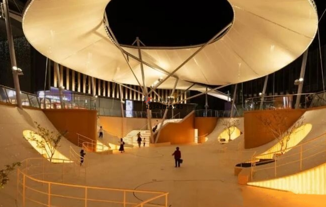 但不管怎么有格調(diào)的下沉式商業(yè)。廣場(chǎng),它也是一個(gè)半露天的公共空間,如果缺乏遮陽(yáng)避雨設(shè)施,無法提供更加舒適的休閑環(huán)境,因此,在下沉廣場(chǎng)上方增設(shè)頂蓋是非常必要的,而且一個(gè)兼具美觀、時(shí)尚、實(shí)用的頂蓋也是建筑的加分項(xiàng)。