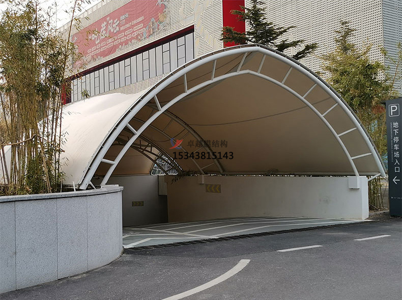 該小區(qū)的入口通道采用了雙層膜結(jié)構(gòu)的設(shè)計(jì),外層膜采用高強(qiáng)度聚酯纖維材料,內(nèi)層膜采用聚乙烯材料,兩層膜之間填充了聚氨酯泡沫材料,具有優(yōu)秀的實(shí)用性和功能性,為居民的停車提供了便利。在膜材的選擇上,采用了環(huán)保材料,符合現(xiàn)代環(huán)保理念。此外,自動(dòng)化控制系統(tǒng)的使用,也使得遮陽雨棚更好的利用。以保證入口通道的舒適度和安全性。整個(gè)膜結(jié)構(gòu)造型簡潔、大方,線條流暢,呈現(xiàn)出現(xiàn)代科技感。膜結(jié)構(gòu)的使用不僅提高了小區(qū)的安全性能,還增加了小區(qū)的景觀價(jià)值,成為小區(qū)的一大特色。