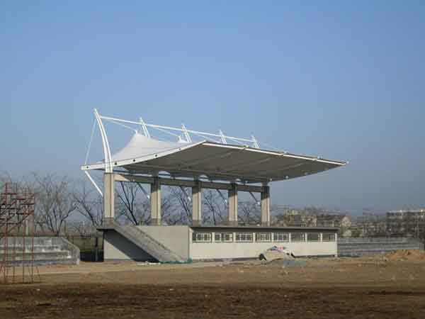 張拉膜看臺(tái)主要用于各類地方體育場主席臺(tái)雨棚,各類學(xué)校體育場看臺(tái)雨棚遮蓋,我公司是國內(nèi)較早從事大懸挑張拉膜結(jié)構(gòu)看臺(tái)設(shè)計(jì)施工的專業(yè)廠家,下面介紹一下我們?cè)趯幉ㄊ兄苓吙h市完工的一些張拉膜看臺(tái)設(shè)計(jì)施工案例,我公司先后在寧波周邊承接了寧波職業(yè)技術(shù)學(xué)院張拉膜看臺(tái)雨棚、寧波城市職業(yè)技術(shù)學(xué)院張拉膜看臺(tái)罩棚、浙江醫(yī)藥高等??茖W(xué)校張拉膜看臺(tái)遮陽棚等設(shè)計(jì)施工項(xiàng)目,簡介如下: