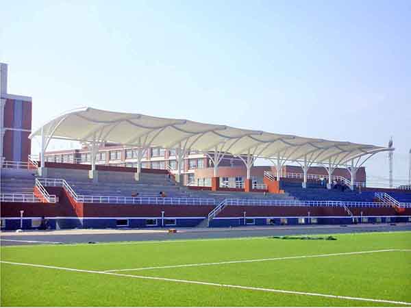 張拉膜看臺主要用于各類地方體育場主席臺雨棚,各類學校體育場看臺雨棚遮蓋,我公司是國內(nèi)較早從事大懸挑張拉膜結(jié)構(gòu)看臺設(shè)計施工的專業(yè)廠家,下面介紹一下我們在南昌市周邊縣市完工的一些張拉膜看臺設(shè)計施工案例,我公司先后在南昌周邊承接了江西水利職業(yè)學院張拉膜看臺雨棚、江西衛(wèi)生職業(yè)學院張拉膜看臺罩棚、江西外語外貿(mào)職業(yè)學院張拉膜看臺遮陽棚等設(shè)計施工項目,簡介如下: