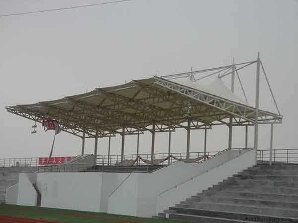 張拉膜看臺(tái)主要用于各類(lèi)地方體育場(chǎng)主席臺(tái)雨棚,各類(lèi)學(xué)校體育場(chǎng)看臺(tái)雨棚遮蓋,我公司是國(guó)內(nèi)較早從事大懸挑張拉膜結(jié)構(gòu)看臺(tái)設(shè)計(jì)施工的專(zhuān)業(yè)廠家,下面介紹一下我們?cè)跓o(wú)錫市周邊縣市完工的一些張拉膜看臺(tái)設(shè)計(jì)施工案例,我公司先后在無(wú)錫周邊承接了無(wú)錫職業(yè)技術(shù)學(xué)院張拉膜看臺(tái)雨棚、無(wú)錫科技職業(yè)學(xué)院張拉膜看臺(tái)罩棚、無(wú)錫商業(yè)職業(yè)技術(shù)學(xué)院張拉膜看臺(tái)遮陽(yáng)棚等設(shè)計(jì)施工項(xiàng)目,簡(jiǎn)介如下: