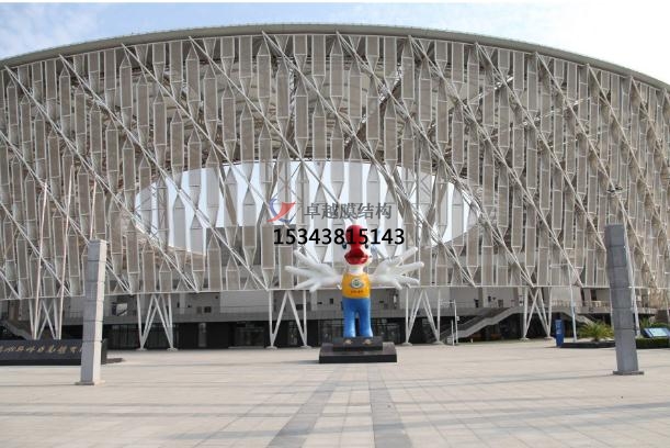 為了完成賦有動(dòng)感的金屬立面前景作用和高度通透的近景作用,立面膜選用PTFE網(wǎng)格膜,表面積約2萬多m2。