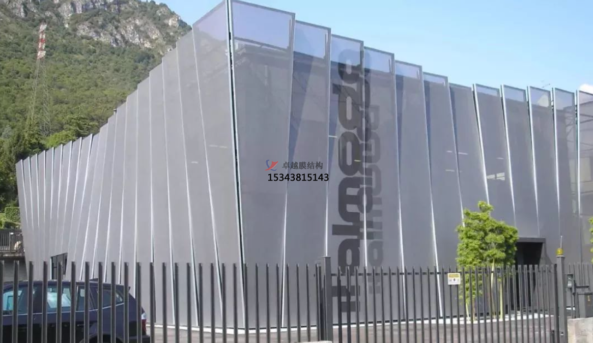 織物膜材具有優(yōu)越的強(qiáng)度、尺寸穩(wěn)定性和牢固性,同時(shí)保證它長期使用期限。材料保持張緊狀態(tài),又保證了其在安裝過程中及使用后尺寸恒定,避免出現(xiàn)松弛變形。