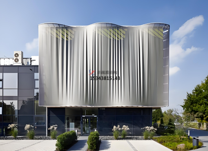 膜結(jié)構(gòu)幕墻是膜結(jié)構(gòu)在建筑外圍護(hù)結(jié)構(gòu)的應(yīng)用,以耐候性的柔性織物作為圍護(hù)材料,結(jié)合框架系統(tǒng),對(duì)既有建筑的外立面進(jìn)行翻新改造或新建筑外立面設(shè)計(jì)應(yīng)用的一種建筑外立面解決方案。膜結(jié)構(gòu)充滿張力且富于變化的曲面,自在靈敏的大空間、透明半透明膜材所構(gòu)成的明亮而又溫和的室內(nèi)環(huán)境,桅桿、拉索、精致的金屬節(jié)點(diǎn)等所表現(xiàn)的富有現(xiàn)代氣息的結(jié)構(gòu)技術(shù),給人們提供了有別于傳統(tǒng)幕墻結(jié)構(gòu)的全新視覺感受,它具有環(huán)保節(jié)能、可100%回收再利用、施工方便、重量輕、高強(qiáng)、高彈、高透光性、柔軟流暢、造型美觀、結(jié)構(gòu)固定簡(jiǎn)單等特點(diǎn)。