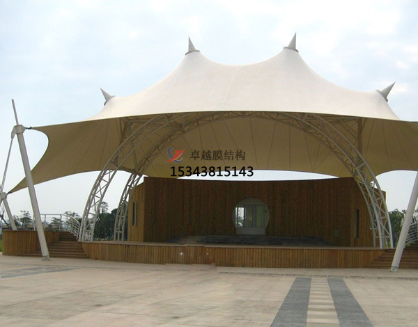5.抵御天氣的影響:舞臺(tái)膜屋面的一個(gè)重要作用就是抵御各種天氣變化(如日曬、雨淋、風(fēng)雪等)對(duì)其內(nèi)部空間的影響,保持建筑物內(nèi)部的舒適性。選擇膜面的形態(tài)和材料時(shí)要考慮到所有可能的天氣狀況,并盡可能利用建筑本身等被動(dòng)方法來(lái)減少能量的消耗。