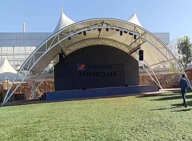 1.雕塑感:舞臺張拉膜結構的獨特曲面外形使其具有強烈的雕塑感。膜面通過張力達到自平衡。負高斯膜面高低起伏具有的平衡感使體型較大的結構看上去像擺脫了重力的束縛般輕盈地飄浮于天地之間。無論室內還是室外這種雕塑般的質感都令人激動。