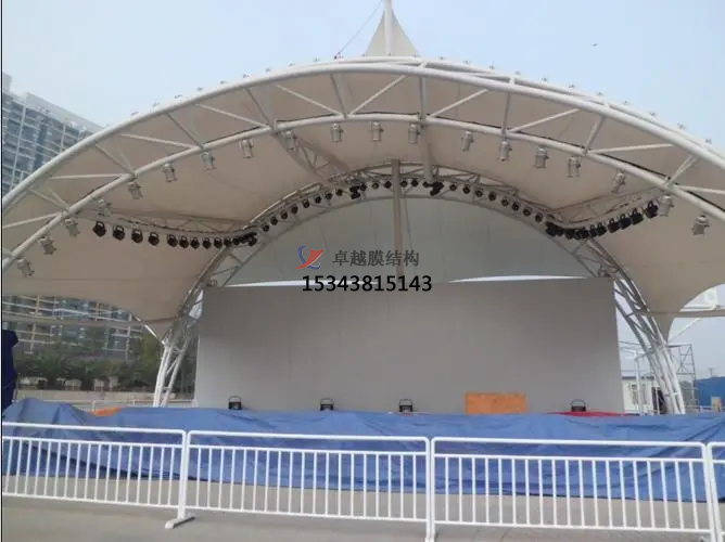 6.抵御天氣的影響:舞臺膜屋面的一個重要作用就是抵御各種天氣變化(如日曬、雨淋、風雪等)對其內部空間的影響,保持建筑物內部的舒適性。選擇膜面的形態(tài)和材料時要考慮到所有可能的天氣狀況,并盡可能利用建筑本身等被動方法來減少能量的消耗。
