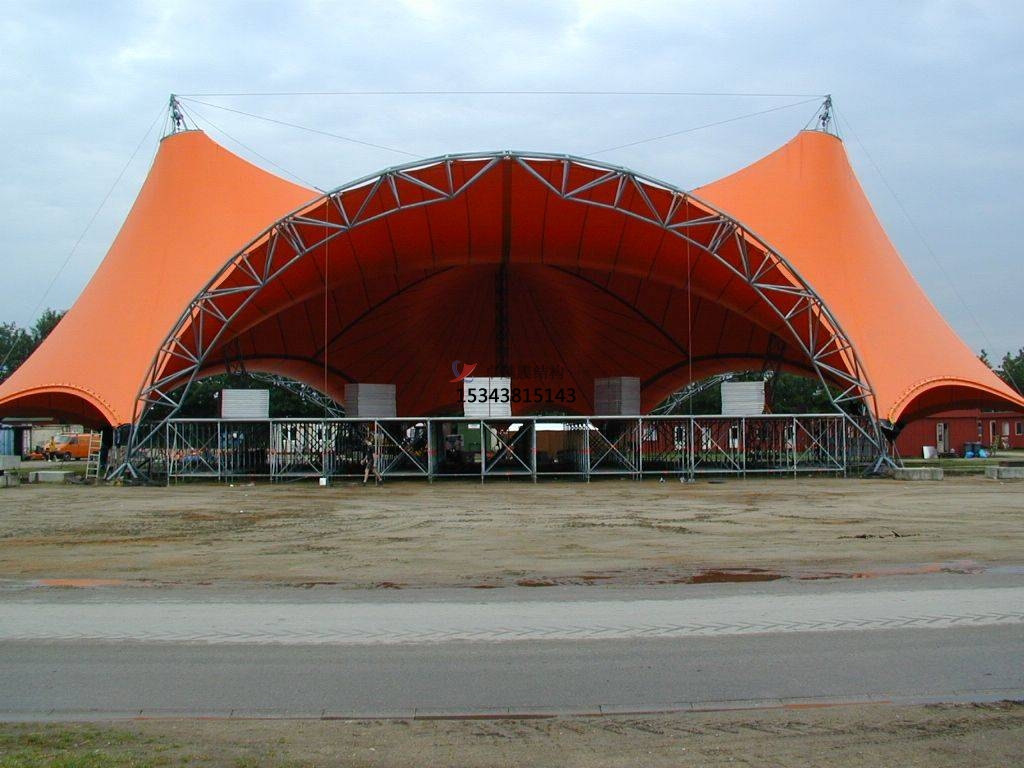 3、易于安裝和拆卸:膜結(jié)構舞臺的安裝和拆卸非常方便,可以快速完成,并且對周圍環(huán)境的影響很小。