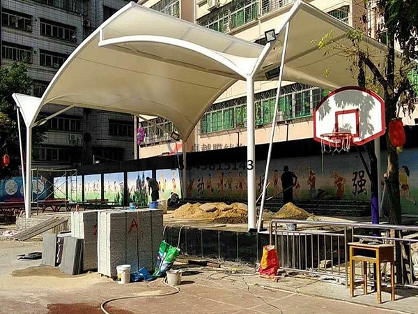 通常這些材料是:①膜材②邊界鋼索③節(jié)點(diǎn)板④調(diào)節(jié)桿⑤邊界鋁條⑥夾具夾板⑦張拉鋼索⑧各種輔助件,如縫紉線、耐磨襯墊、纜繩帶等;