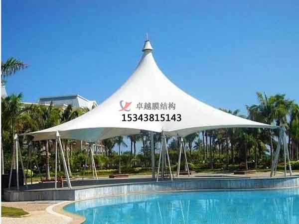 膜結(jié)構(gòu)游泳館遮陽棚因膜材所呈現(xiàn)出柔性外觀,創(chuàng)造了一種新的柔性建筑風(fēng)格而受到矚目,且高性能膜材具有自重輕,力學(xué)性能好等特點,也使大跨度的無柱建筑空間成為可能,因此在特定的條件下(尤其是體育建筑,展覽建筑)膜結(jié)構(gòu)是一種能極大豐富建筑外觀的理想選擇。