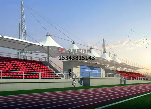 學(xué)校體育場(chǎng)看臺(tái)遮陽棚膜結(jié)構(gòu),操場(chǎng)主席臺(tái)遮陽棚張拉膜及運(yùn)動(dòng)場(chǎng)主席臺(tái)遮陽頂棚廠家,廠家設(shè)計(jì)安裝的膜結(jié)構(gòu)體育看臺(tái)能極大地美化校園環(huán)境,同時(shí)為主席臺(tái)、看臺(tái)提供優(yōu)良的遮風(fēng)擋雨設(shè)施。膜結(jié)構(gòu)以柔性的薄膜和索為重要受力資料。要進(jìn)行膜結(jié)構(gòu)的工程設(shè)計(jì),有必要知道其資料。用于修建工程的薄膜資料能夠分為織物類膜材和非織物類膜材兩大類。其中織物類膜材常用的有PVDF涂層掩蓋聚酯纖維織物(以下簡稱PVC膜材)以及PTFE涂層掩蓋玻璃纖維織物(以下簡稱PTFE膜材);非織物類膜材則以ETFE薄膜具代表性和競(jìng)爭性。膜材的挑選通常在很高程度上取決于修建物的功用、防火需求、設(shè)計(jì)壽數(shù)和投資額。膜結(jié)構(gòu)是建筑結(jié)構(gòu)中新發(fā)展起來的一種形式,它以性能優(yōu)良的織物為材料,或是向膜內(nèi)充氣,由空氣壓力支撐膜面,或是利用柔性鋼索或剛性支撐結(jié)構(gòu)將面繃緊,從而形成具有一定剛度、能夠覆蓋大跨度空間的結(jié)構(gòu)體系。鄭州膜結(jié)構(gòu)的設(shè)計(jì)主要包括體形設(shè)計(jì)、初始平衡形狀分析、荷載分析、裁剪分析等四大問題。通過體形設(shè)計(jì)確定建筑平面形狀尺寸、三維造型、凈空體量,確定各控制點(diǎn)的坐標(biāo)、結(jié)構(gòu)形式,選用膜材和施工方案。由于膜材料本身沒有抗壓和抗彎剛度,因此其剛度和穩(wěn)定性需要靠膜曲面的曲率變化和其中預(yù)應(yīng)力來提高,對(duì)膜結(jié)構(gòu)而言,任何時(shí)候不存在無應(yīng)力狀態(tài),因此膜曲面形狀終必須滿足在一定邊界條件、一定預(yù)應(yīng)力條件下的力學(xué)平衡,并以此為基準(zhǔn)進(jìn)行荷載分析和裁剪分析。在外荷載作用下膜中一個(gè)方向應(yīng)力增加而另一個(gè)方向應(yīng)力減少,這就要求施加初始張應(yīng)力的程度要滿足在不利荷載作用下應(yīng)力不致減少到零,即不出現(xiàn)皺褶。河南索膜結(jié)構(gòu)體育場(chǎng)看臺(tái)是一種不同于傳統(tǒng)結(jié)構(gòu)的看臺(tái)結(jié)構(gòu)形式,由于其獨(dú)特新穎、優(yōu)美豐富的造型而越來越得到廣泛的應(yīng)用。并且它打破了以往先建筑,后結(jié)構(gòu)的設(shè)計(jì)過程,結(jié)構(gòu)工程師一開始就直接參與到建筑的選型過程中來。膜材一種新興的建筑材料,已被公認(rèn)為是繼磚、石、混凝土、鋼和木材之后的第六種建筑材料;減小結(jié)構(gòu)的變形就必須增加結(jié)構(gòu)的抗力;而膜結(jié)構(gòu)是通過改變形狀來分散荷載,從而獲得小內(nèi)力增長的。如果您需要更詳細(xì)的信息,請(qǐng)致電卓越膜結(jié)構(gòu)有限公司,郭經(jīng)理13101719686。