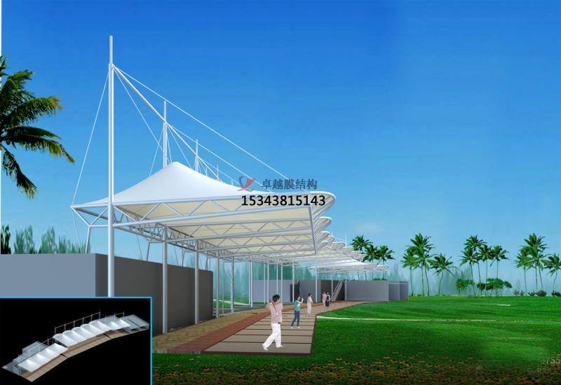 膜結(jié)構(gòu)高爾夫發(fā)球臺遮陽棚效果圖