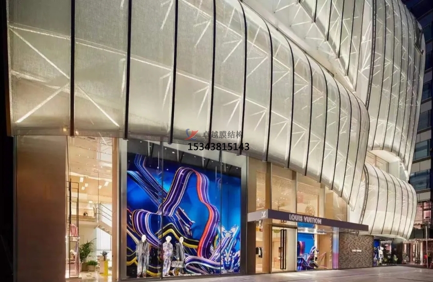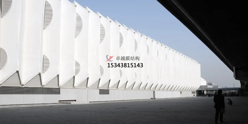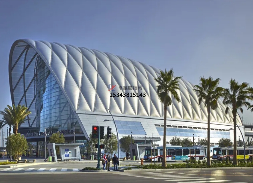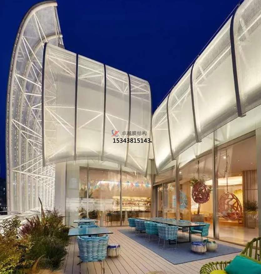 膜結(jié)構(gòu)使得建筑輕盈感十足,膜材料的良好透性使得建筑界面透光而不透視。由于該材料(ETFE)氣枕在陽光底下富有通透感光線可以通過漫射和折射進(jìn)入界面,讓膜結(jié)構(gòu)建筑呈現(xiàn)出朦朧夢(mèng)幻之美。