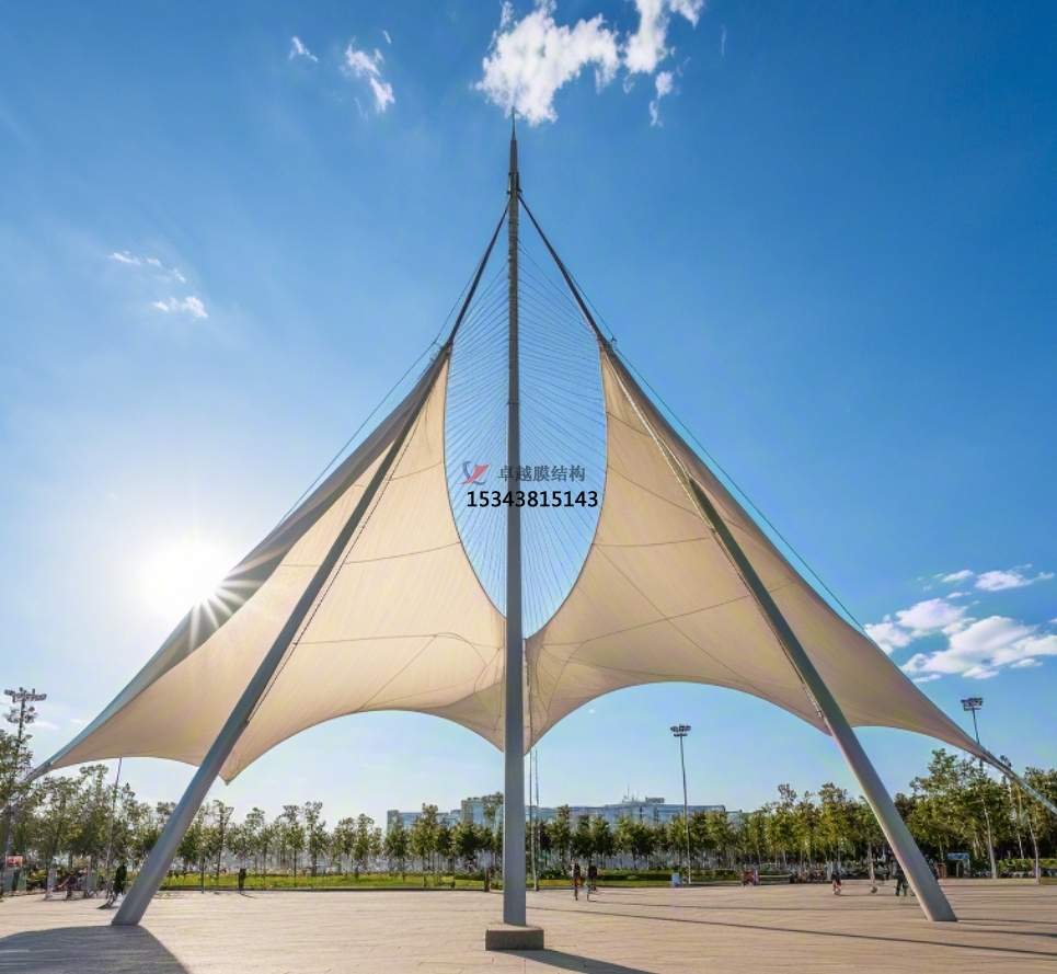 在當(dāng)代城市規(guī)劃與景觀設(shè)計(jì)中,膜結(jié)構(gòu)作為一種創(chuàng)新且充滿藝術(shù)感的建筑形式,正逐漸成為廣場(chǎng)和公園等公共空間的新寵。這種結(jié)構(gòu)以其獨(dú)特的形態(tài)、輕盈的質(zhì)感以及出色的環(huán)境融合性,為城市空間帶來(lái)了前所未有的視覺(jué)體驗(yàn)和功能提升。