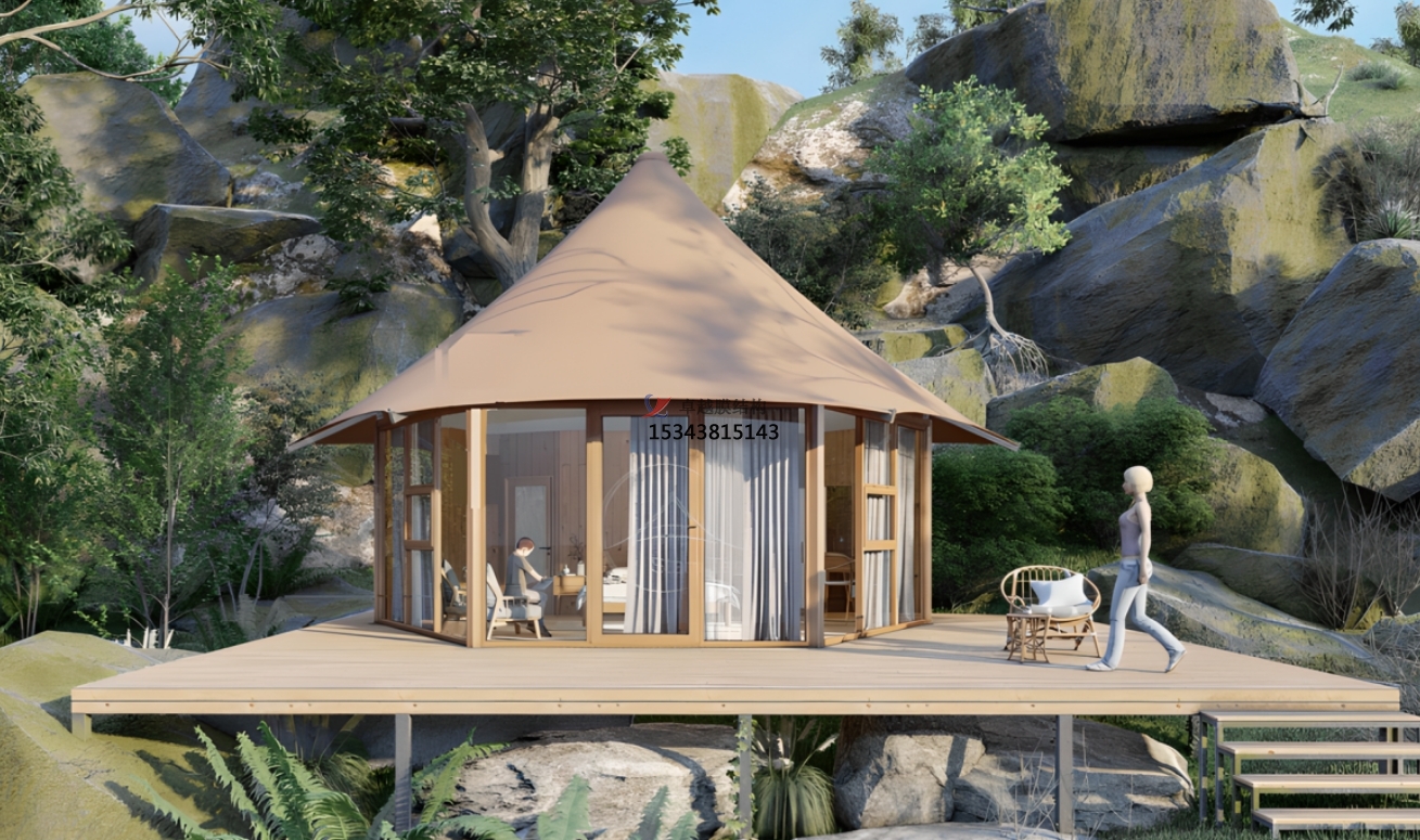 膜結(jié)構(gòu)式帳篷酒店的核心在于其采用的先進(jìn)膜結(jié)構(gòu)技術(shù)。這種結(jié)構(gòu)以高分子材料制成的薄膜為主要構(gòu)件,通過(guò)精確的計(jì)算與設(shè)計(jì),形成既輕盈又穩(wěn)固的建筑形態(tài)。與傳統(tǒng)的磚混或鋼結(jié)構(gòu)相比,膜結(jié)構(gòu)不僅大大減輕了建筑的自重,降低了對(duì)地基的要求,而且其流線型的外觀和半透明的材質(zhì),使得酒店仿佛與自然融為一體,讓旅客在享受舒適住宿的同時(shí),也能近距離感受大自然的魅力。