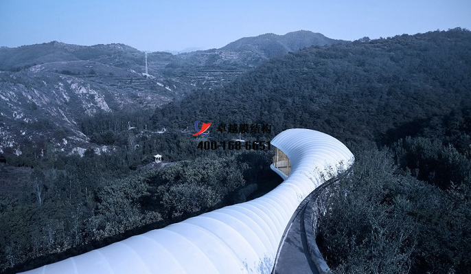 工程概況:泰安書吧膜結(jié)構(gòu)工程是一個(gè)集觀景、閱讀、休閑娛樂(lè)于一體的綜合項(xiàng)目,既有膜結(jié)構(gòu)建筑本身的現(xiàn)代化氣息,又有設(shè)計(jì)者及建造者高超技藝賦予的精致典雅,給人一種時(shí)尚別致卻又內(nèi)斂質(zhì)樸的觀感。本工程建筑屋面為流線形,建筑面積約600平米。外膜采用德國(guó)進(jìn)口白色環(huán)保膜材,內(nèi)膜采用PTFE內(nèi)膜,中間加保溫隔熱層,內(nèi)膜需要安裝燈光。屋面以下為全阿封閉空間,墻體采用落地玻璃形式,從各個(gè)角度都能獲得極佳的視野效果。