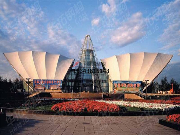 結(jié)合整體環(huán)境,建造出標(biāo)志性的形象工程,并且實用性強、應(yīng)用領(lǐng)域廣泛。既可應(yīng)用了大型公共設(shè)施,如體育場館的屋頂系統(tǒng)、機場大廳、展覽中心、購物中心、停車場、站臺設(shè)施等。又可應(yīng)用于休閑設(shè)施、工業(yè)設(shè)施、入口廊道以及標(biāo)志性或景觀性的建筑、小品等。