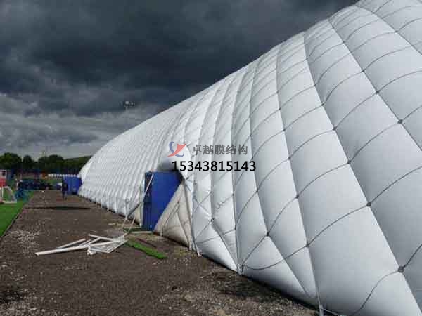 2、我公司利用膜結(jié)構(gòu)的輕巧,別致的造型建造各種半封閉,全封閉充氣膜結(jié)構(gòu)中的高強(qiáng)度柔韌薄膜稱膜材,它是一種耐腐蝕、耐高溫、耐久用、高強(qiáng)度的樹脂類涂層織物,由多種復(fù)合PVC樹脂涂層刀刮成型,具有質(zhì)地柔韌、厚度小、重量輕、透光性好的特點(diǎn)。對自然光吸收和透射能力、阻燃,具有良好的耐久、防火、氣密等特性;表面經(jīng)過特氟龍?zhí)幚砘蚨?a title="氧化">氧化鈦抗老化處理,具有較高的自清潔性能。下面就大家介紹一下我公司在五家渠市地區(qū)完成的部分膜結(jié)構(gòu)項(xiàng)目。